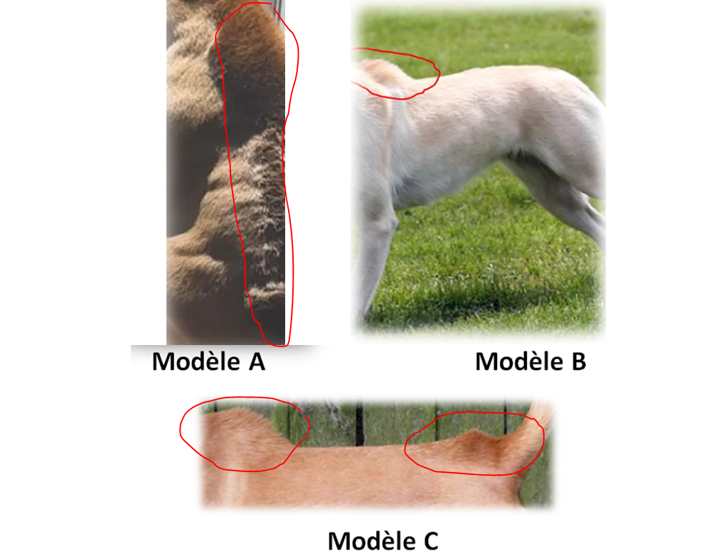 Karen London PhD, CAAB, CPDT-KA propose 3 modèles de piloérection, chacun correspondant à 3 états émotionnels différents.